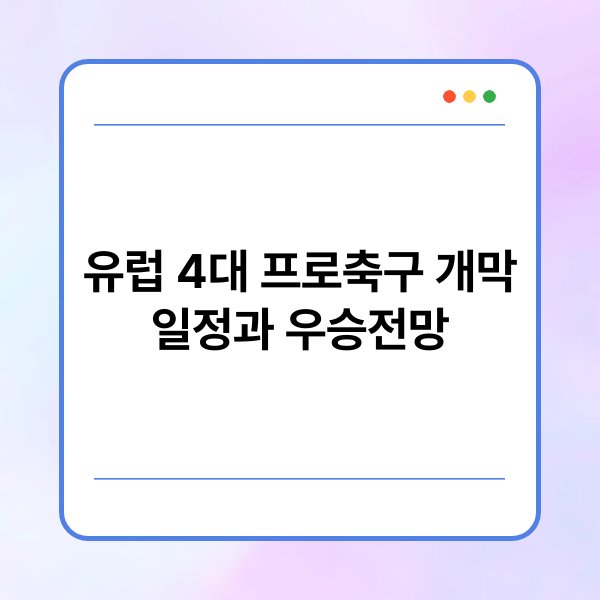 유럽 4대 프로축구 리그는 매년 많은 팬들로부터 큰 관심을 받고 있습니다. 특히, 각 리그의 개막 일정과 우승 전망은 팬들에게 중요한 정보입니다. 본문에서는 프리미어리그, 라리가, 분데스리가, 세리에A의 개막 일정과 각 팀의 우승 가능성을 분석하겠습니다. 이를 통해 팬들은 새로운 시즌을 준비하는 데 필요한 정보를 얻을 수 있습니다. 유럽 축구의 트렌드를 이해하는 데 도움이 될 것입니다.